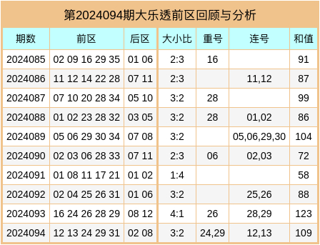 第2024095期大乐透前区回顾与分析